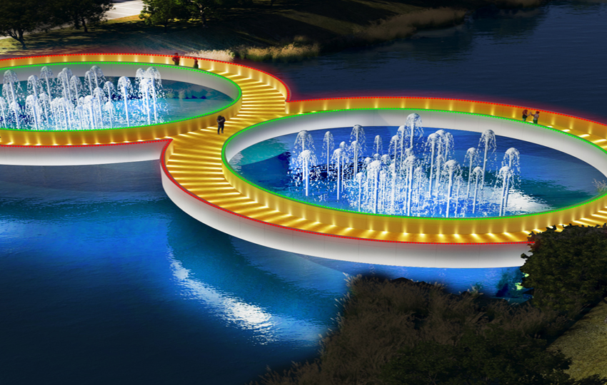 喷泉灯光环形路